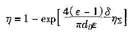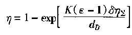 2.當(dāng)過濾器內(nèi)所填充的為與圓柱形纖維捕塵體時,纖維層過濾除塵器的除塵效率與單一纖維捕塵體的綜合捕塵效率關(guān)系式為: