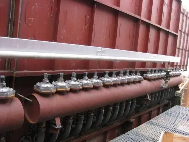 (3)壓縮空氣壓力調(diào)整         氣動閥控制的反吹風(fēng)袋式除塵器和脈沖噴吹袋式除塵器,都以壓縮空氣為動力完成清灰過程。把壓縮空氣調(diào)整到設(shè)計壓力和氣量,才能保證除塵器正常啟動和運轉(zhuǎn)。過高的壓縮空氣容易吹損布袋,過低則容易積灰。一般在初期濾袋清灰效果較好時,降低清灰壓力。后期濾料機灰較多時則提高清灰壓力。