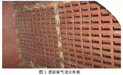 在改造方案中充分考慮了已有的條件,利用了已施工完成的設(shè)備基礎(chǔ),在原電除塵器基礎(chǔ)上,保留了電除塵器殼體、支架、灰斗和平臺(tái)爬梯等,拆除陰陽(yáng)極系統(tǒng),在除塵器內(nèi)部安裝濾袋系統(tǒng)、脈沖噴吹系統(tǒng)、設(shè)置合理的流場(chǎng)分布裝置。在設(shè)備選型時(shí),盡量選用相同與已有設(shè)備的型號(hào),便于后續(xù)的設(shè)備檢修和維護(hù)工作;好化地利用現(xiàn)有設(shè)備,降低改造成本。