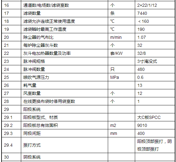 4 在原電除塵器的第二、三、四電場(chǎng)原立柱頂面水平鋪設(shè)花板,安裝濾袋、籠骨和噴吹系統(tǒng),作為布袋除塵區(qū)。布袋除塵區(qū)每臺(tái)爐在寬度方向分為4列、每列分為3個(gè)室。每臺(tái)爐分24個(gè)清灰單元、共480個(gè)三寸脈沖閥、共7440條濾袋。布袋除塵采用外濾式,噴吹系統(tǒng)選用固定行噴吹清灰技術(shù)。每室1個(gè)人孔門,每個(gè)室之間相互獨(dú)立。在運(yùn)行中如果某個(gè)室出現(xiàn)故障,關(guān)閉該室的離線閥、打開人孔門實(shí)現(xiàn)不停爐分室檢修(即可以實(shí)現(xiàn)不停爐進(jìn)行更換布袋操作);也可以在運(yùn)行時(shí)關(guān)閉某個(gè)室離線閥,實(shí)現(xiàn)離線清灰,保證清灰效果。