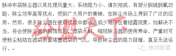 脈沖布袋除塵器結(jié)露現(xiàn)象原因分析及解決辦法